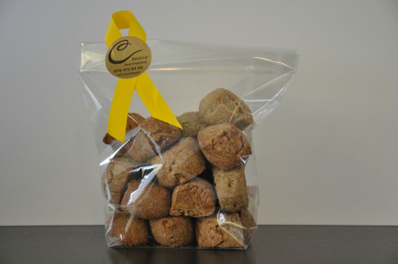 Pour accompagner votre café, je vous propose de déguster des bricelets sucrés conditionnés dans des sachets de 90g au prix de Fr. 6.50 ou de 190g au prix de Fr. 11.00.