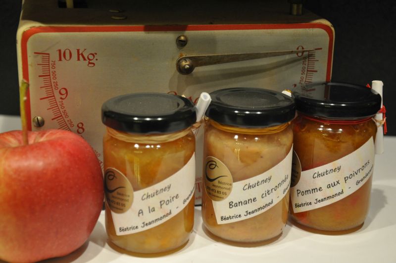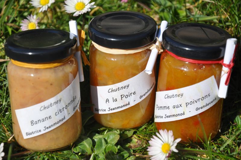 Le chutney, d'origine indienne et par conséquent anglaise, est une préparation aigre-douce, à la texture de confiture, réalisée à partie de fruits, de légumes cuits avec du sucre, du sel, des épices et du vinaigre. Se décline sous plusieurs parfums. Je vous propose pour l'instant ceux-ci :