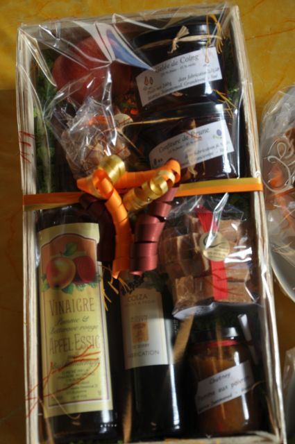Que ce soit pour un anniversaire, un mariage, pour des cadeaux d'entreprise, des planches à prix pour des sociétés, une petite intention lors de visites ou de remerciements... caramels, confitures, bricelets, chutneys s'entremêlent à saucisse sèche, huile, vinaigre, flûtes, miel, vin ou autres pour la confection de paniers garnis. Mon plus grand plaisir est de les confectionner avec goût. J'aime les personnaliser en fonction de celui qui va le recevoir.